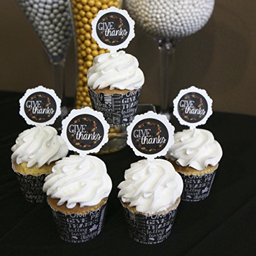 Give Thanks - Thanksgiving Party Cupcake Wrapper & Cupcake Pick Thanksgiving Party Kit - Set of 24
