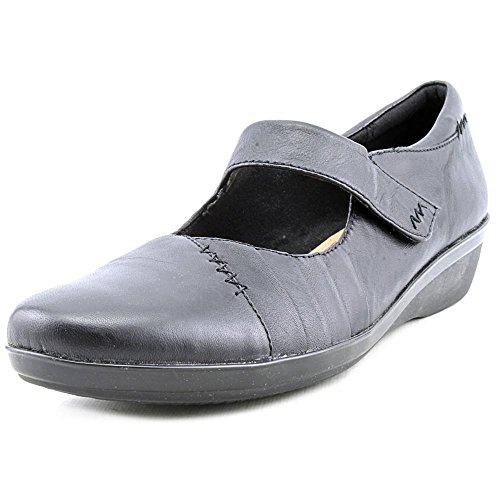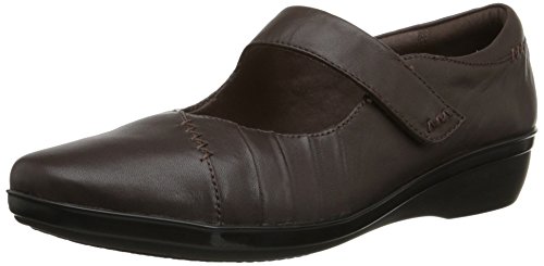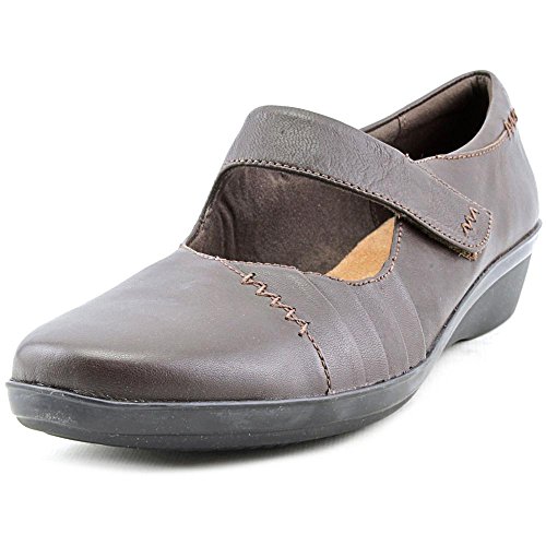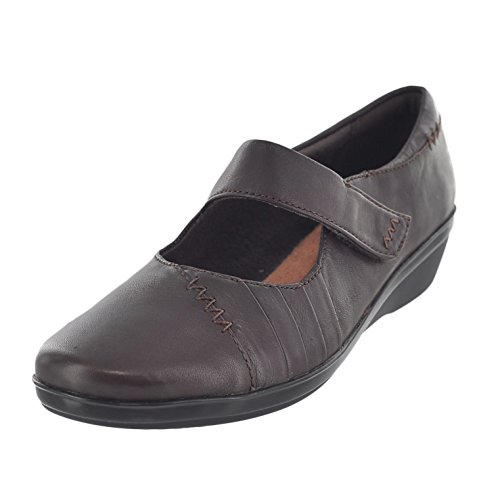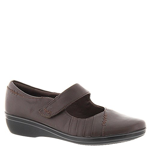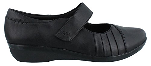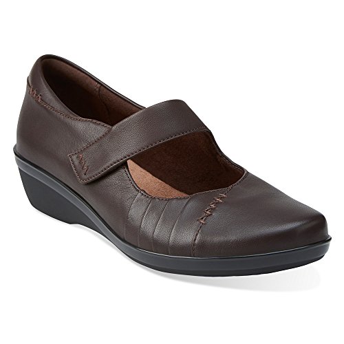 Women's Clarks, Everlay Daphne Low Heel Shoes Wrap your feet in these comfortable mary janes Leather upper with pleated details for added appeal Adjustable hook and loop closure strap for an easy on and off Fabric lining Ortholite cushioned insole for added comfort 1 1/4 inch heel Rubber outsole. Heel Height of 1.25 inchesFeature