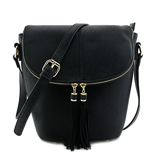 This large flap top bucket crossbody bag makes easy to organize your everyday items.