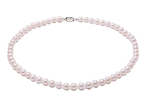 Single-strand white pearl necklace, made with 6-7mm natural round freshwater pearls of AAA-grade.