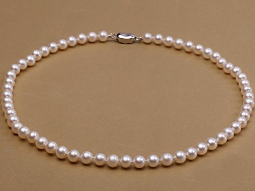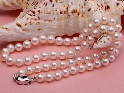 Single-strand white pearl necklace, made with 6-7mm natural round freshwater pearls.
