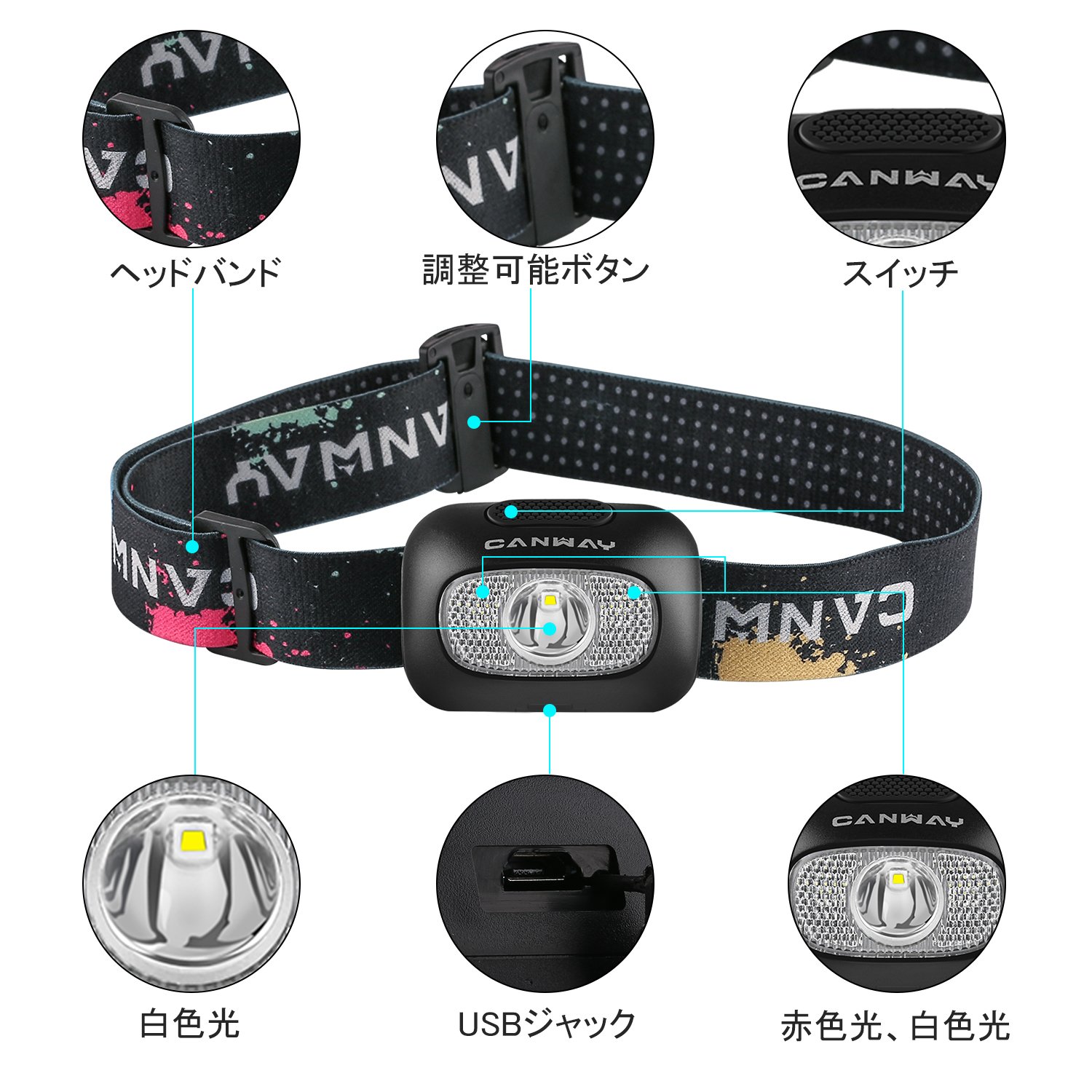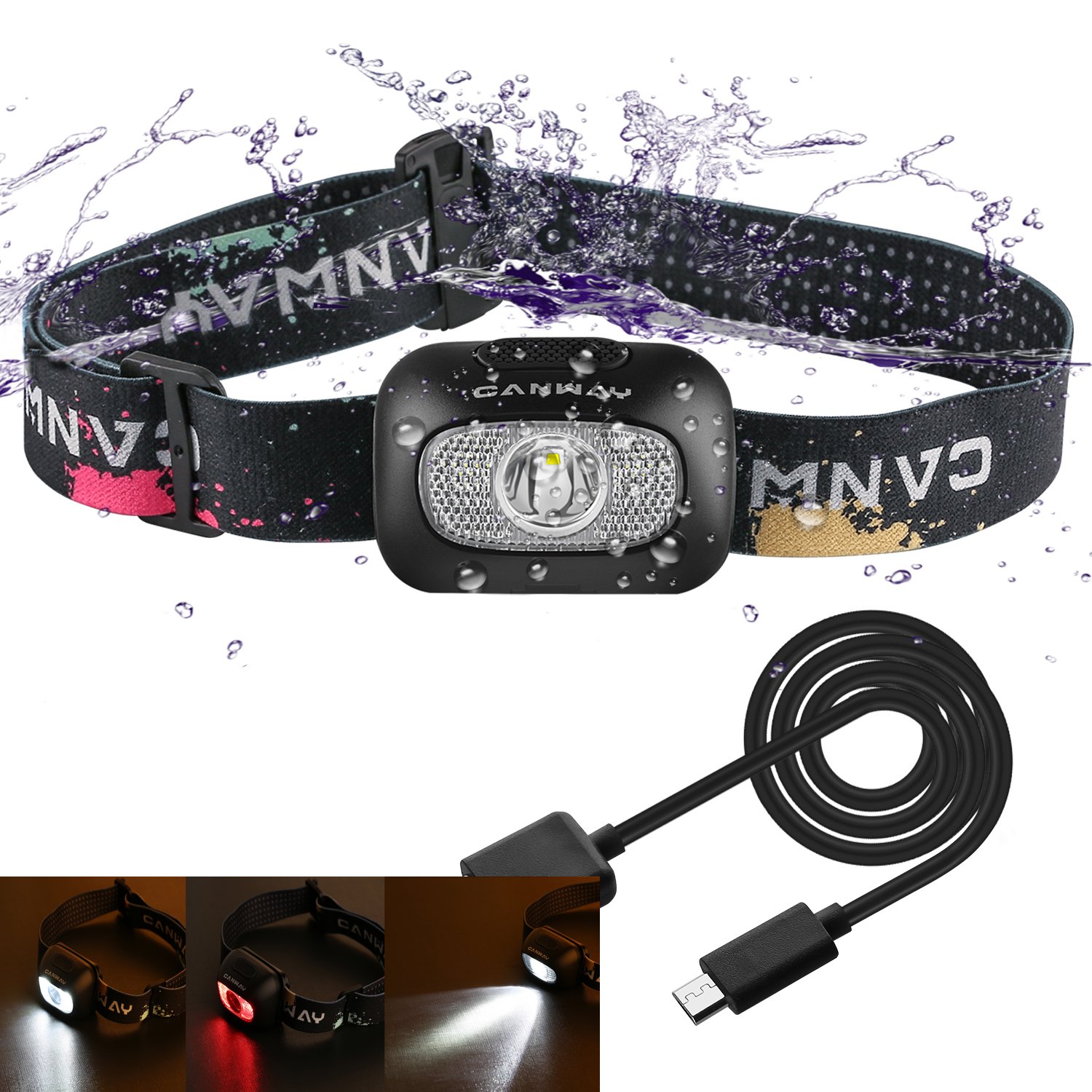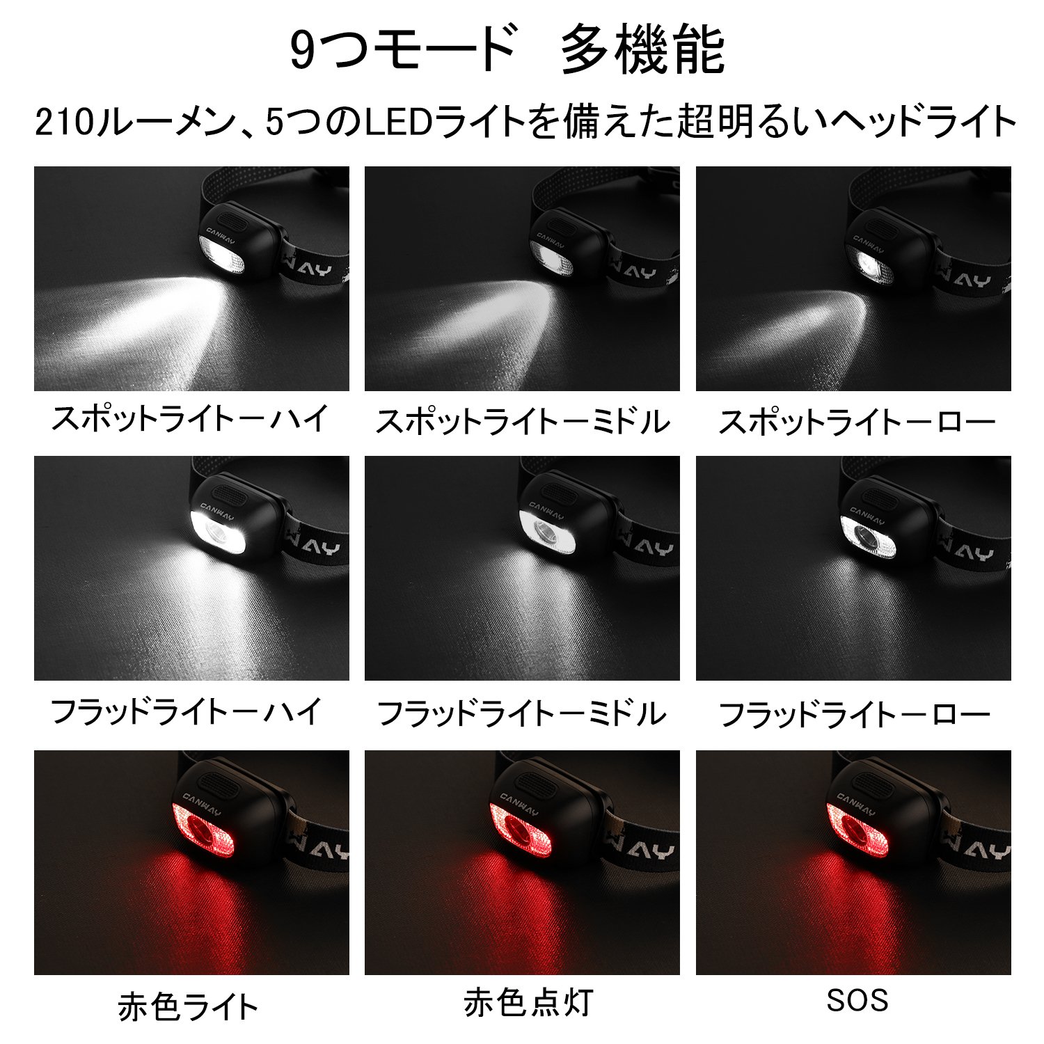 CANWAY super powerful LED head light 9 modes waterproof specification Ideal for outdoor activities!
