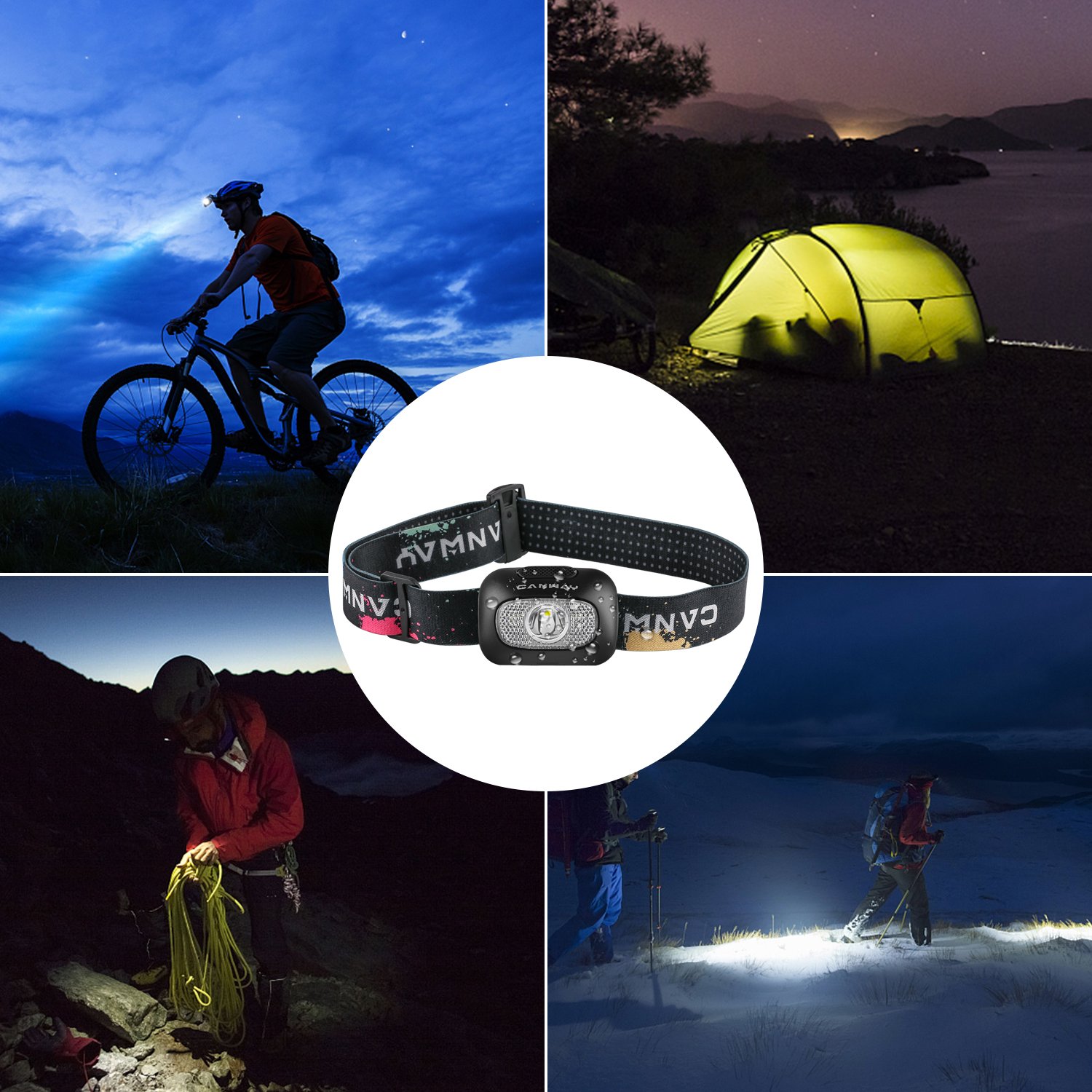 Because both hands are free, it is ideal for night activities such as helmet, jogging, camping, fishing, running, reading, hiking, caving, cycling, kayaking, housing construction work and car repair.