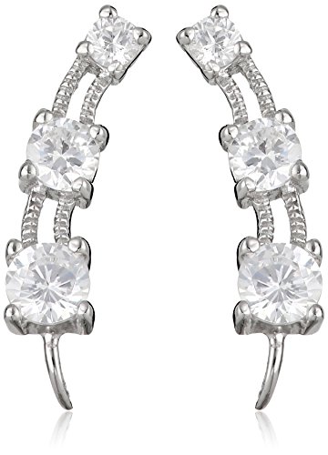 Ridged sterling silver ear pins featuring three faceted cubic zirconia