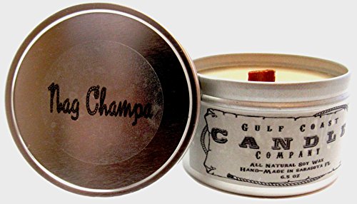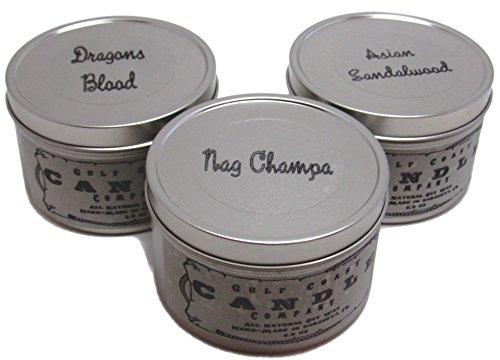 ALL NATURAL SOY SCENTED WOOD WICK CANDLES - MAN CAVE COLLECTION BY GULF COAST CANDLE COMPANY - SET OF 3: NAG CHAMPA, DRAGONS BLOOD AND ASIAN SANDALWOOD 6.5 OUNCE CANDLES