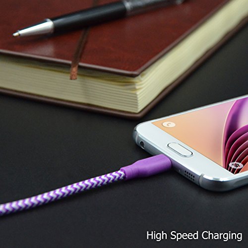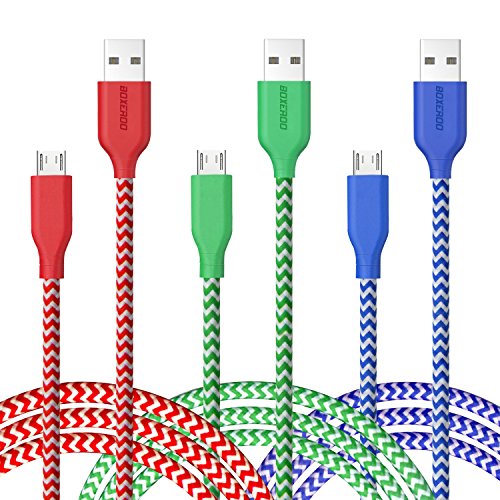 USB Cords Micro, 3-Pack 6ft Boxeroo Premium Nylon Braided USB Charger Sync and Charge Cords for Samsung Galaxy, Edge, Note, HTC One, LG, Android Phones and More(Blue, Rose, Purple)