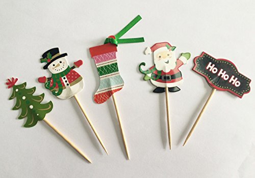 (PARTYMASTER)/Stationery Party Supplies/Party Supplies/DIRECT FROM USA/PARTYMASTER Christmas Party Decorations Food Toothpicks Cupcake Muffin Toppers Mixed Packaging,24pcs