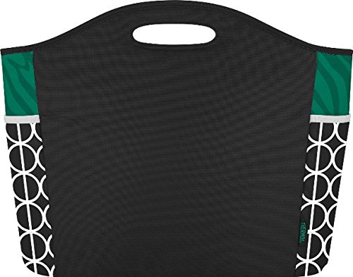 -. Title : Thermos Brand 24 Can Insulated Green and Black and White Patterned Tote