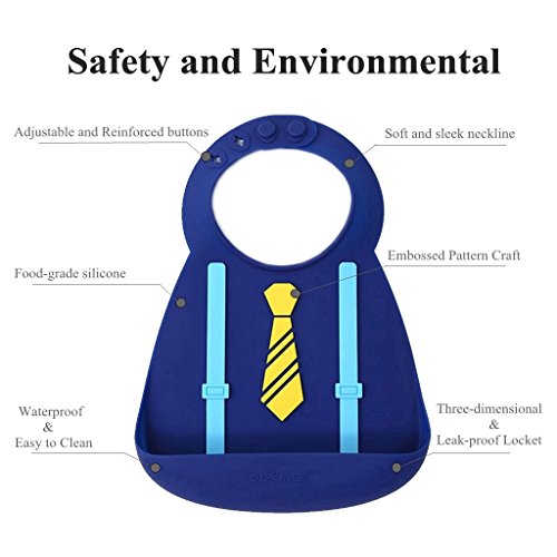 -. Feature : LIFETIME MONEY BACK GUARANTEE---If you are not satisfied with our baby bibs, we will refund your purchase. / EASY TO CLEAN---100% Food Grade Silicone resists stains and does not absorb water.Use a bit of dish soap, simply wash up in the sink or wipe it. / FASHIONABLE DESIGN---Lovely 3D embossed design, makes your baby look more outstanding and fashionable. / PORTABLE & COMFORTABLE---The soft bibs are foldable and easy to carry,and New button design makes it fit better around the baby's neck. / SAFE---Made of 100% food grade soft silicone,BPA Free.