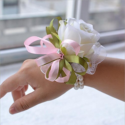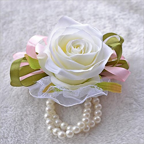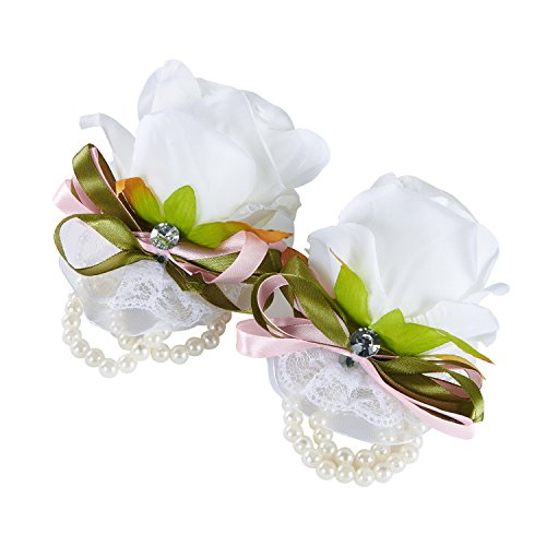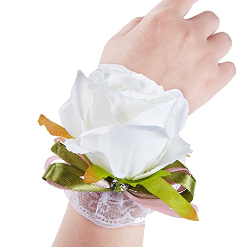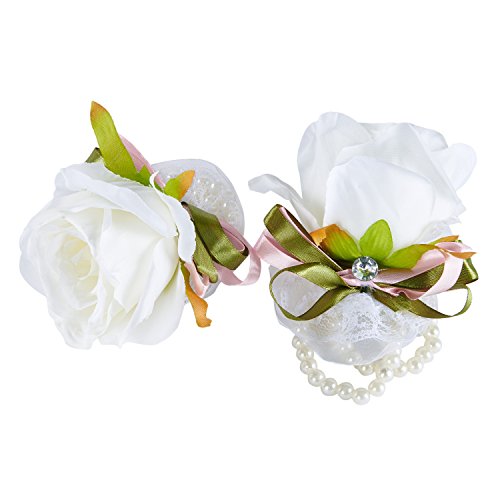 2Pack Wedding Wrist Flowers Artificial Rose for Bridal Bridesmaids (2)