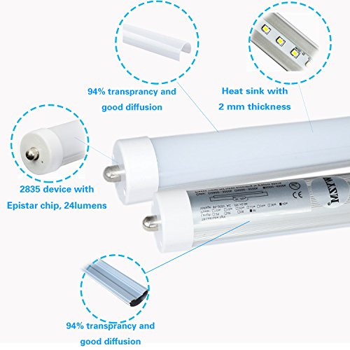 WYZM 6ft FA8 30W Cool White T8/T12 LED Tube Lights,No Ballast Required (4-Pack White)
