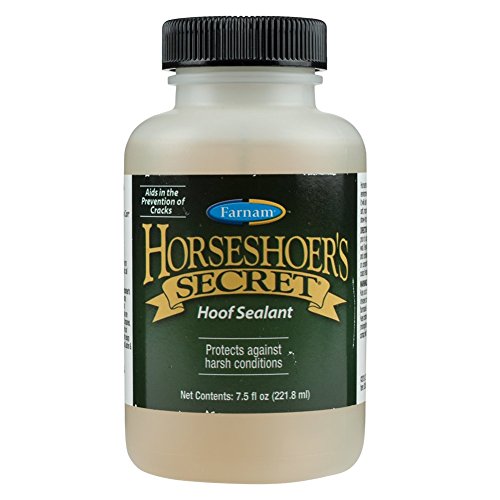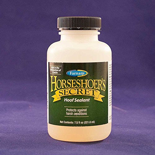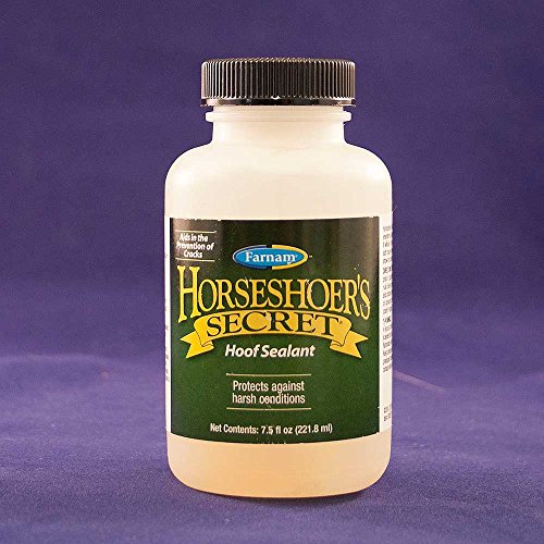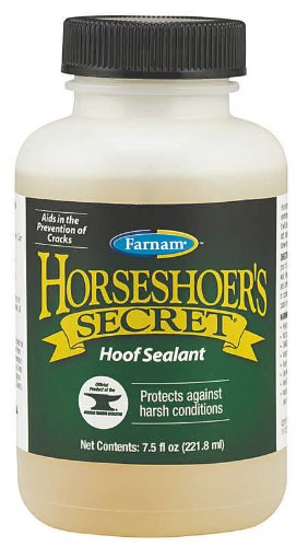 Studio : FARNAM CO., INC Publisher : FARNAM CO., INC Binding : Sports Product Description Horseshoer's Secret(R) Hoof Sealant NEW! Seals in essential moisture under dry conditions. Keeps excessive moisture out under wet, soggy conditions. Quick-drying waterproof formula seals in moisture Gives hooves a show-ring shine Aids in the prevention of cracks in hot, dry conditions or the development of soft, mushy hooves in wet conditions Does not contain toluene Available in 7.5 oz size with easy-to-use applicator DIRECTIONS FOR USE: Hoof wall must be clean and dry prior to application. Apply weekly, or as needed, to hoof wall. Begin approximately 1/2 inch below coronary band and continue down hoof wall. Do not use on bulbs of heel or coronary band. Allow to dry before applying additional coats if required. Active Ingredient: methyl methacrylate 30.0%. Inactive Ingredient: acetone. 0