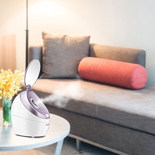 - Multi-function Steamer: 4-in-1 facial steamer is not only good for Face Cleaning and Skin Care, but also can be used as a Humidifier and a large two-side HD Mirror. You can fix the facial mask through the mirror, is convenient to look in it. Also when you close the mirror, it can protect against dust and stop releasing mist.