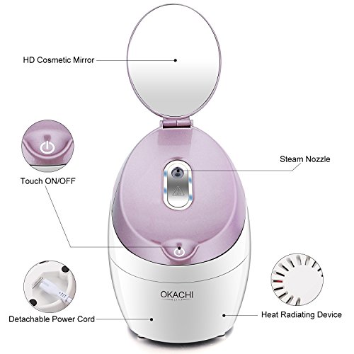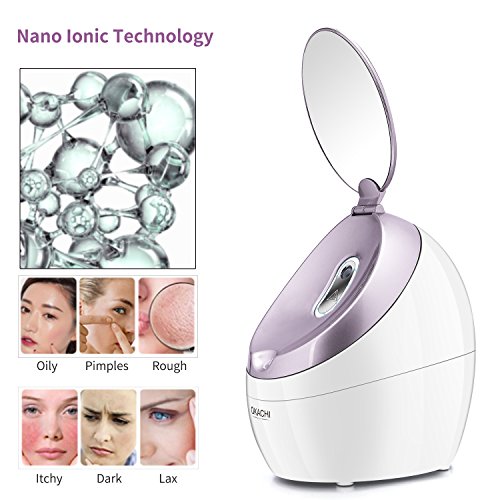 - Powerful & Consistent Steam: Generates full-powered steam in about 30 Seconds. Advanced nano ionic atomizer silently & effectively turns clean water into micro-fine particles to produce a powerful, consistent mist. Moisturizing effectively, improving skin nutritional absorbency, relieving sinuses and cleansing pores. Skin feel refreshed and maintain a beautiful natural-looking.