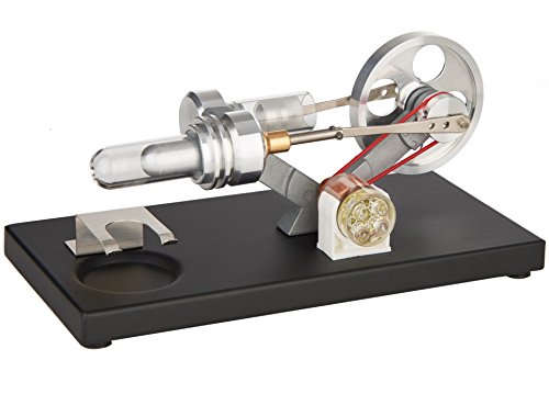 Studio : Sunnytech® Publisher : Sunnytech® Binding : Toy Product Description Package: Sunnytech® package LOGO stickered Sunnytech® Hot Air Stirling Engine BLUE LED Education Toy Electricity FD03M Features: LED Color:BLUE Speed:1300 to 1500 RPM Weight: 330g Size: 180mm X 90mm X 90mm Material: Glass, Wood and Aluminium With the help of the twin flywheels, this engine run madly.Because of the heat from highgrade alcohol,the engine will run madly and creat the electricity. The power will go though the wire and drive the SMALL RED BULB lighting in the wooden board. It's really interesting and imaginative toy.. It is a amazing and fantastic product at this price,it can be a great gift to your families or friends. It also can be used for teaching purpose. Many of our ustomers comes from school,colleague,etc. What is the stirling engine? A Stirling engine is a heat engine that operates by cyclic compression and expansion of air or other gas, the working fluid, at different temperature levels such that there is a net conversion of heat energy to mechanical work.The engine is like a steam engine in that all of the engine's heat flows in and out through the ngine wall. How it works? This is traditionally known as an external combustion engine in contrast to an internal combustion engine where the heat input is by combustion of a fuel within the body of the working fluid. Unlike the steam engine's use of water in both its liquid and gaseous phases as the working fluid,the Stirling engine encloses a fixed quantity of permanently gaseous fluid such as air or helium. As in all heat engines, the general cycle consists of compressing cool gas, heating the gas, expanding the hot gas, and finally cooling the gas before repeating the cycle. 0