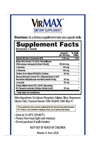 -. Title : VirMax Once Daily Formula NeuroMAX, Natural Brain Function Formula, 30 Day Supply, 30 Capsules