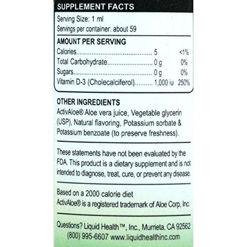 -. Title : Liquid Health 1000 IU Vitamin D3 - 2.03 fl oz - Based in pure ActivAloe Aloe Vera Juice - Gluten Free - Dairy Free