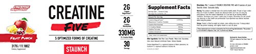 If your goals are to increase muscle strength and size, improve recovery and enhance muscle size, Staunch Creatine FIVE is created for you! Creatine is recognized in the scientific community as a product that delivers improved strength and enhanced muscle growth. Overall, it is the perfect supplement for those serious about achieving serious gains. Creatine comes in many forms and each type offers its own specific edge. So we took the staunch road and gave you a blend of our 5 favorite creatine forms all-in-one: Creapure, MagnaPower, Tri-Creatine Malate, Creatine Pyruvate, and Creatine Anhydrous. What more could you want? This is a high five straight from the Koala Freak himself.Feature