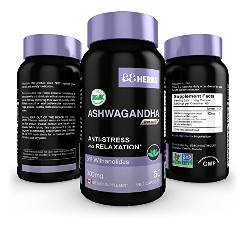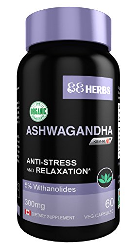 Studio : BBG HEALTH CORP. Publisher : BBG HEALTH CORP. Binding : Health and Beauty Product Description 88Herbs uses 100% pure KSM-66 Ashwagandha - an award winning and powerful anti-stress adaptogen. It is certified organic by USDA. It's also verified Non-GMO (by non GMO project). KSM-66 is a powerful, full-spectrum root extract with > 5% of highest quality withanolides (HPLC). This KSM-66 ashwagandha has been proven in clinical trials (humans) to significantly reduce anxiety, reduce cortisol and stress, and increase libido and sexual performance in both men and women. It's also proven to be an excellent sports enhancing supplement - it increases testosterone in men by 17%, decreases cortisol, increases muscular strength, increases muscle mass, decreases body fat, decreases recovery time after workouts. And a lot more... 88Herbs brand KSM-66 is in vegetarian capsules and has zero additives. It's certified Kosher, Halal, and Gluten Free. 0