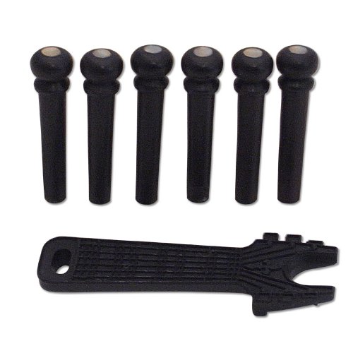 Pickboy Exotic Natural Series Bridge Pin set, Ebony, 6 pins with puller