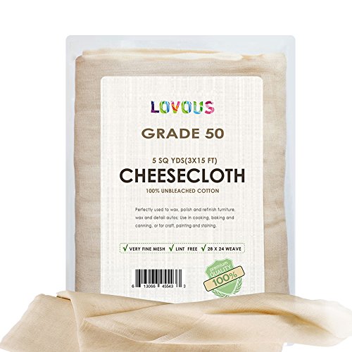 LOVOUS 100% Unbleached Cheesecloth Ultra-Fine Grade 50 Butter Muslin Perfect for Cooking, Nut milk Filter, Cheese Making, Broth Strainer, Muslin Bag 5 Sq Yards/ 45 SQ Feet