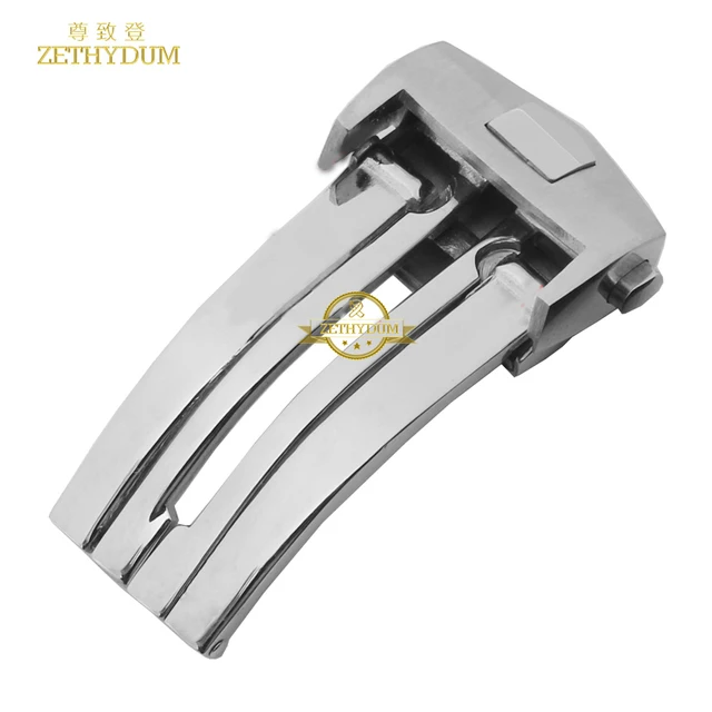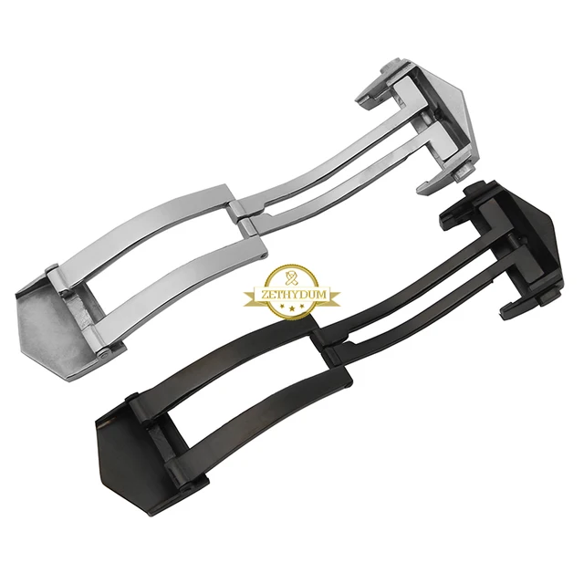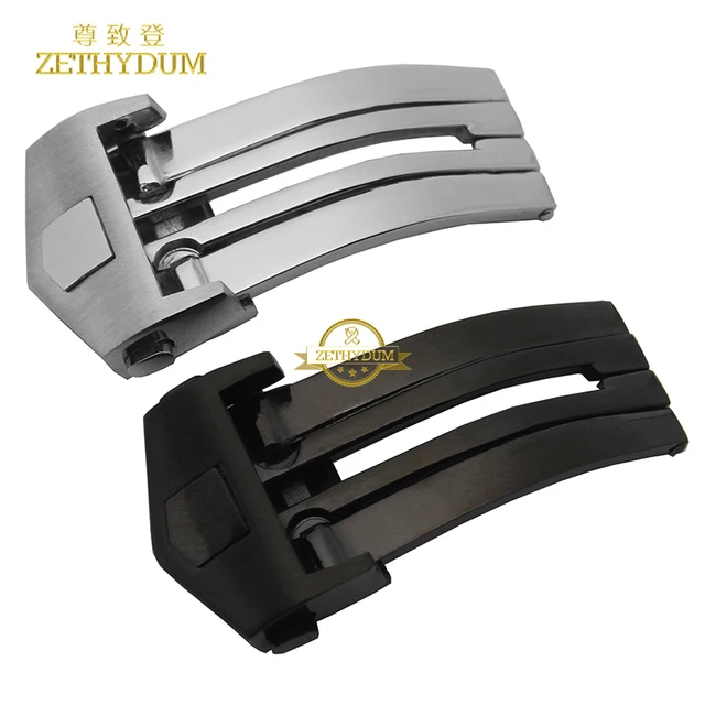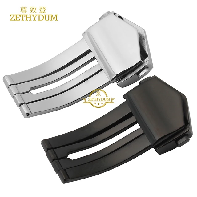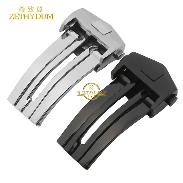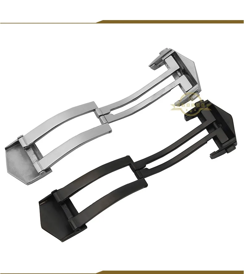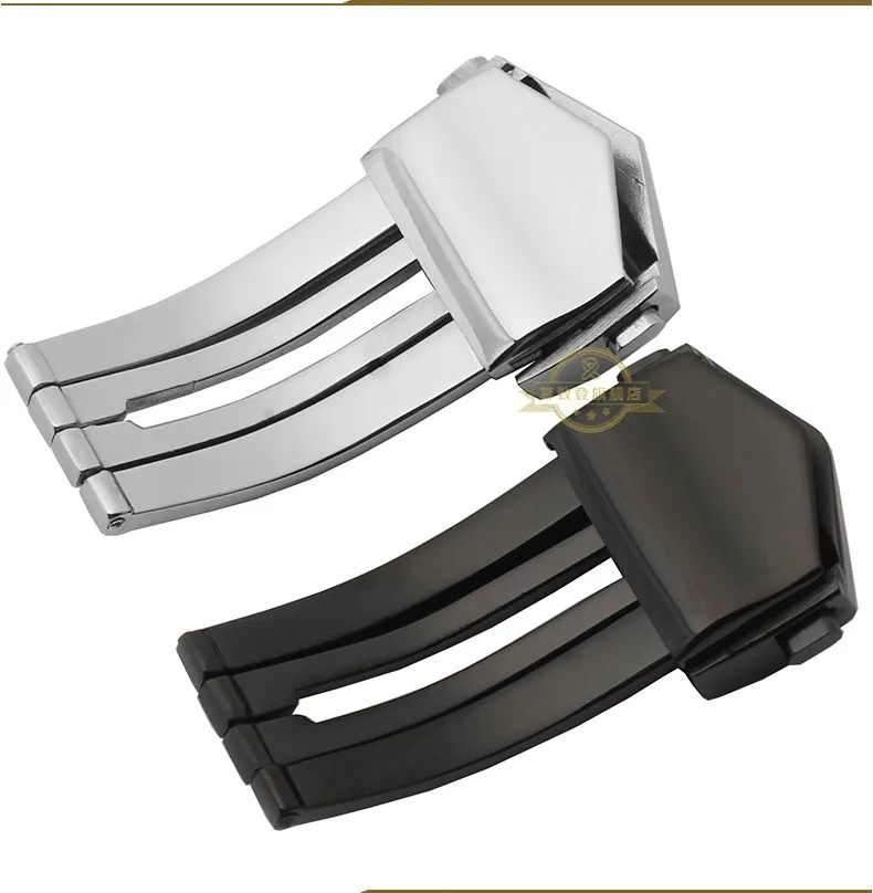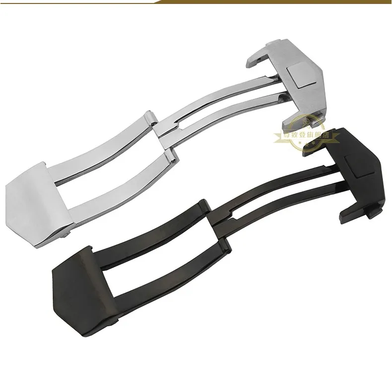 [해외]스테인레스 스틸 손목 시계 여성의 걸쇠 가죽 팔찌 316L 고체 금속 배 버클 18 20 미리메터 시계 버튼 실버 블랙