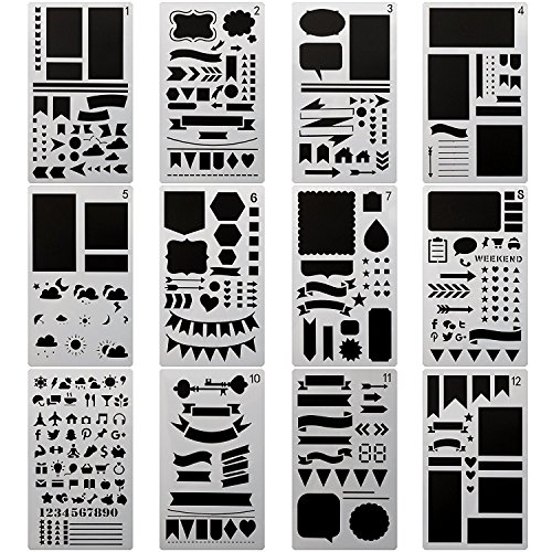 - RICH YOUR DAILY LIFE – Our Bullet Journal Stencil Set have 12 pcs different drawing templates, all have different design, which can stimulate your creativity and rich your life