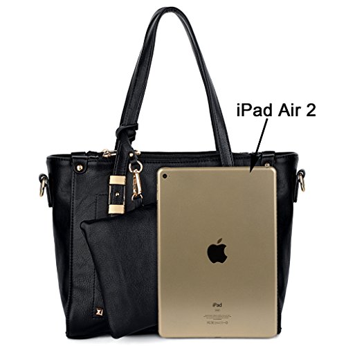 -. Brand : UTO -. Department : womens -. Feature : HIGH QUALITY - Soft synthetic leather. Classy gold-tone top zipper closure. Detailed streamlined stiching. Full-lined coffee fabric lining. / LARGE CAPACITY - 3 top zipper closure compartments. The main compartment has 2 slip side pockets and 1 side zipper pocket. Exterior: 1 back zipper pocket and 1 zipper wristlet wallet. / EXTREMELY PRACTICAL - Comfortably holds a 9.7" iPad Pro, tablet or laptop under 10". Pockets can hold your smartphone, house keys, cosmetic, hair band and other tiny items. / MULTIPURPOSE - Handheld / Single Shoulder Carried by 2 Handles. Crossbody Carried by 1 detachable/adjustable shoulder strap. / DIMENSIONS - 11.61"L x 5.11"W x 10.03"H. Weight: 1.83 pounds. Removable and Adjustable Shoulder strap: 48.42". Handle drop: 8.07". Wallet: 6.41"L x 0.66"W x 4.21"H. Wristlet: 6.69". -. ProductGroup : Shoes -. ProductTypeName : HANDBAG -. Title : UTO Women Handbag Set 2 Pieces Bag PU Leather Tote Shoulder Purse Bags Wallet Strap