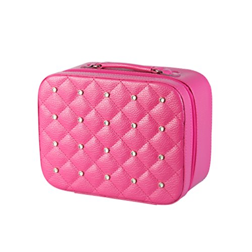 Lwind Portable Makeup Bag, Two Sizes of Multi-Function Diamond Zippers Storage Boxes for Cosmetics, Gadgets, Travel, etc (Pink)