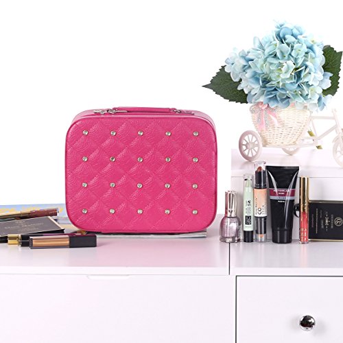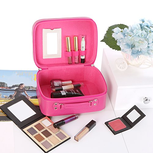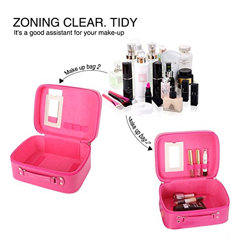 - DURABLE: Makeup bag use hard material, tidy and fine close stitching ensure the bags are sturdy and durable; Its scarfskin is made of PU fabric, water proof, shake proof, excellent cold-proof, breathability and aging resistance; Lining covered with velvet, avoid damaged goods