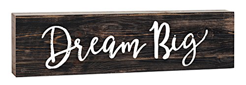 Dream Big Script Design Distressed 2 x 6 Inch Solid Pine Wood Paul Bunyan Toothpick Sign