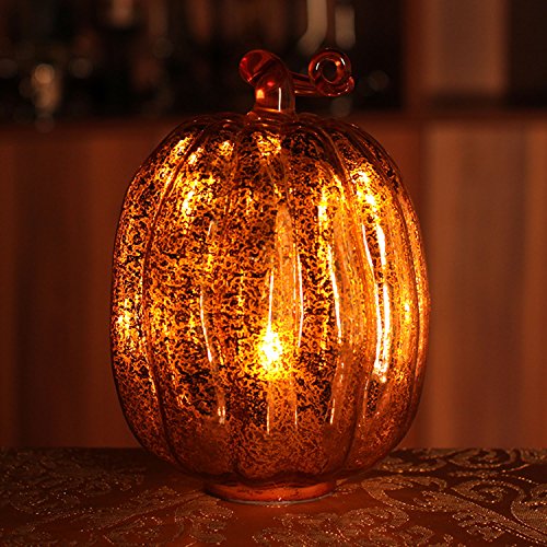 Pumpkin Lantern with Flameless Candle,4 and 8 hour Timer, 9 inch Height,Gold