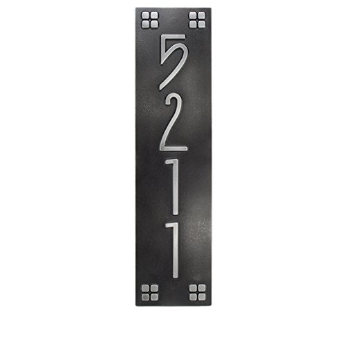 -. Title : Vertical American Craftsman 4 Number Squares Only 6x24 - Raised Pewter Coated Address Plaque