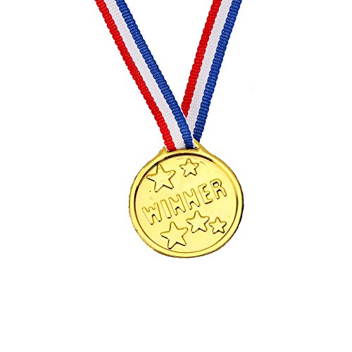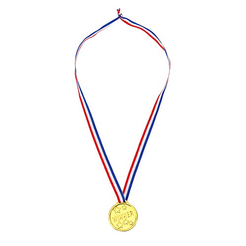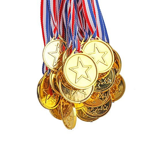Yarssir 24-Pack Kids Children’s Gold Tone Winner Award Medals Set With Neck Ribbons