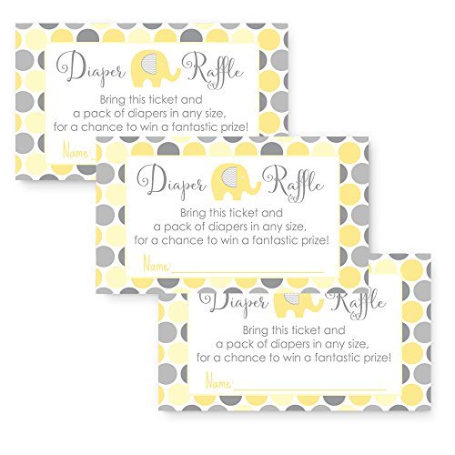 Yellow Elephant Baby Shower Diaper Raffle Game, Polka-Dot Invite Insert Card (25 pc.)