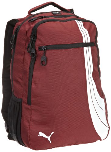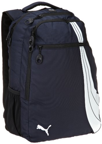 This backpack has a dual main zip compartment, dual side mesh pockets, front zip pocket, top fleece lined media pocket, rubber cord port, internal organizer, padded back,adjustable padded shoulder straps, reverse tape zippers, soft touch molded pu zipper pulls with logo, sonic weld form stripe, front raised rubberized sonic weld puma cat logo, relective woven logo label on shoulder strapFeature