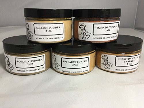 -. Feature : Gift set Set contains: Shitake Extract Powder, Porchini Extract Powder, Roasted Cabbage Powder, Soy Sauce Powder, Tomato Powder / All natural. Never any, MSG or fillers. Our spices are 100% pure. / Our manufacturer custom packs all orders by hand so you know your spice is fresh. / Comes in 5 individual and convenient 2 oz jars for easy storage and use. / Excellent Gift for those who love to cook / experiment with new cooking trends