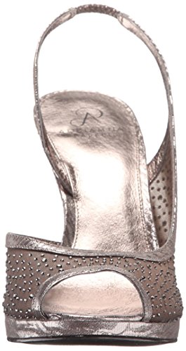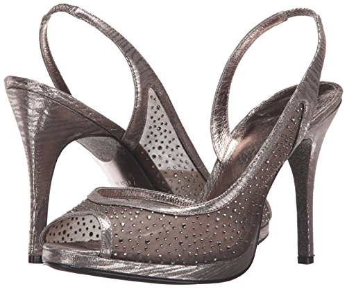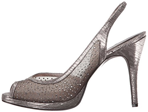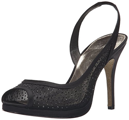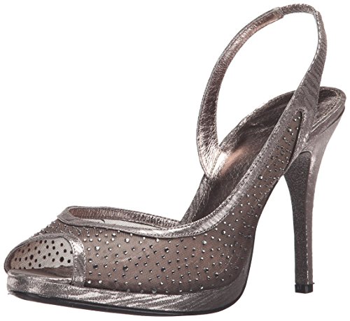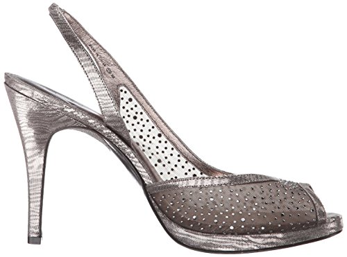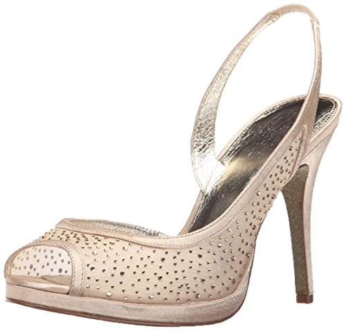 Airy mesh styles this dressy platform slingback sandal detailed in rhinestones. Metallic leather sock lining for added comfort. 4 inch