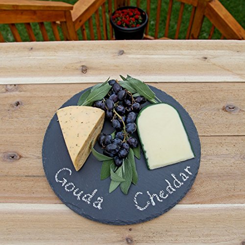 Feature : RUSTIC CHARM. This simple cheese plate adds understated class to your get-togethers. Great for both modern and vintage inspired kitchens. / CHALK INCLUDED. Label your cheeses by writing their names directly on the slate. Chalk is included. / LARGE SIZE. At 12-3/4 inch diameter, you can fit all of your favorite cheese on this serving tray, plus crackers, grapes and other appetizers. / EASY TO MAINTAIN. Just wipe clean. Durable, though could break if not carefully handled. Needs no special care or upkeep. / GREAT HOUSEWARMING GIFT. Perfect for those who love to entertain. Makes a great gift for a hostess or newly wedded couple.