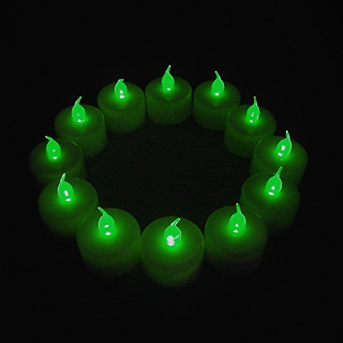 TrendBox 48 Green, LED Plastic Tea Tealight Candles Lamp Flameless Shine Anniversary Wedding Party Restaurant Atmosphere Decoration Battery Operated