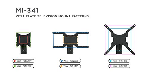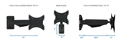 -. Feature : HEIGHT ADJUSTABLE TV MOUNT- Up to 11.5" of vertical adjustment can be achieved with the touch of a finger. Gas sP.R.Ing arm tension is adjustable to suit the weight of your tv/monitor. / FULL MOTION TV BRACKET - Swivel 90 deg left and right. Tilt 12 deg down and 2 deg up. Full motion capability makes is ideal for corner installation. Extends from the wall 2.63" to 16.7". / GAS SP.R.ING ARM - Gas sP.R.Ing works as counterbalance for ease of movement and height adjustment. The tension is ADJUSTABLE for various TV models. TV must weigh at least 15 lbs for the sP.R.Ing to work. / UNIVERSAL COMPATIBILITY - Fits all TV brands on the market. Fits TVs up to VESA 400x400 and 33 lbs (Fits VESA 400X400, 400X300, 400X200, 300X300, 300X200, 200X200, 200X100, 100X100 mm) / EASY INSTALLATION - Easy single stud installation. Bracket comes complete with full instructions and INSTALLATION HARDWARE.