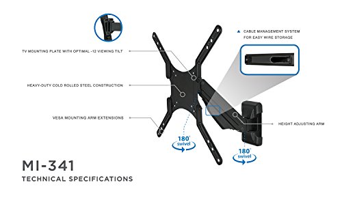 -. Title : Mount-It! Height Adjustable TV Mount, Full Motion Wall Mount Bracket With Interactive Counterbalance Gas SP.R.Ing, Fits Up to VESA 400x400 and 33 Lbs