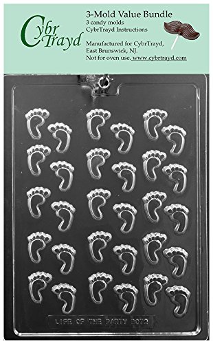 CybrTrayd B072 Baby Feet Decos Chocolate Mold (Bundle of 3), Clear