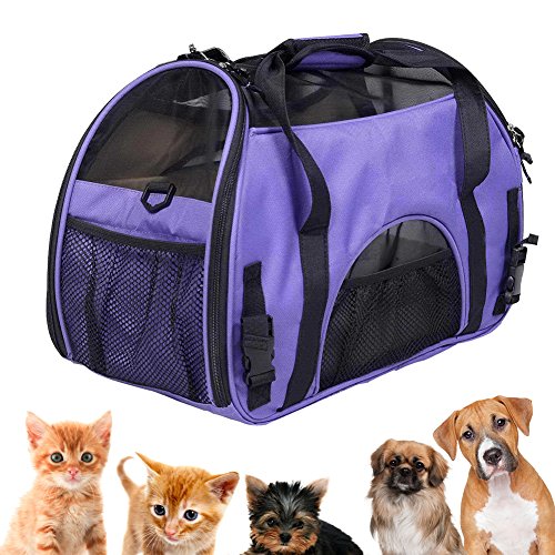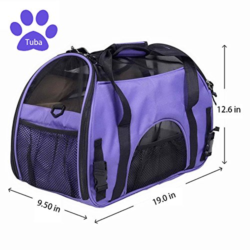 Product Description Why choose the pet carrier? The carrier has mesh panels for ventilation, and it could provide fresh air for you pets. The locking zippers could prevent accidental escapes of your pets. It includes a seat belt security strap which doubles as a luggage strap, and people could be easy to move. The side entry options make it much easier to comfortably load pets in the carrier. A large side zippered pocket can hold your important pet travel documents and anything else your pet may need. The shoulder strap is adjustable and features a padded support for comfort. Product Dimensions: Large Size: 19" x 9.5" x 12.6", a perfect size for most cats Small size: 16.5" x 7.8" x 11.4". How to Measure Your Pet: For pet's length, start at the front of the chest and measure to the end of the pet's rear. For height, measure from the floor to the top of the back. 0 |