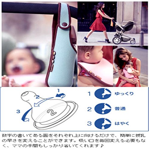 ★ Doubby bib (style) and 360ml size wide neck bottle (bottle) is the set of products that together. ◆ [Product name]: Motion wide neck bottle (bottle) ※ wide neck bottle (bottle) is with 3-position function can be adjusted in three stages depending on the fast to drink the baby. ◆ [actual capacity]: Bottle of capacity 360ml (maximum memory capacity) ◆ [disinfection method]: boiling: ○ / Microwave: ○ / chemical solution: ○ ◆ [Materials]: Food cap the bottle body: Bopipuropen / medium pigs: polyester / nipples: synthetic rubber (silicon rubber) ◆ [heat-resisting temperature]: 100 degrees Cool tolerance temperature: -5 degrees ◆ [Nipple Sucking hole shape]: one cut ◆ [Country of origin: Spain ◆ [Product name]: Motion doubby bib (style) ※ bib will also be the bottle case. Because it can be the same material as the wet suit it has excellent insulated. ◆ [Materials]: outer fabric: 100% polyester / and medium Fabric: neoprene ◆ [Size]: 21x26cm ◆ [country of origin]: can be adjusted in three stages in accordance with the fast drink of China baby 3 position function adoption of suckling is a set of bib also become bottle and the bottle case. Depending on the direction of the bottle nipple it is preempted the speed of breast-feeding (slow normal fast). Shape one cut of the suck hole. Bib is because it can be the same material as the wet suit has excellent insulated.