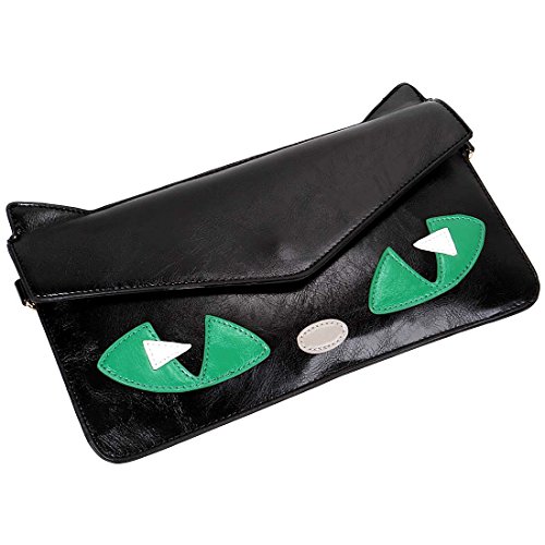 Ditch that boring old clutch and try out these ULTRA CUTE animal face purses. The envelope style bag is made with faux leather and features a black cat face with adorable 1 inch ears. These handbags are thin, but roomy enough for your necessities. The main compartment features soft lining and includes our b.m.c branding patch with interior pockets to help keep you organized. Use the removable, adjustable strap to transform this bag from clutch to shoulder or crossbody bag. Or you can add the wrist strap to create a wristlet style purse. A fun addition to any look. *NOTE*: Due to differences between monitor displays, actual color may vary slightly from image. b.m.c is a registered trademark of Remi Collections LLC and is exclusively distributed by Bundle Monster. The b.m.c trademark is protected by US Trademark Law.Feature