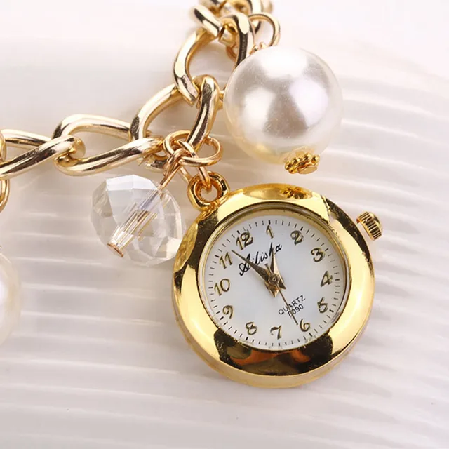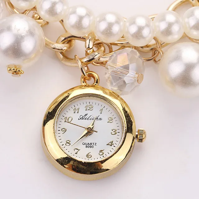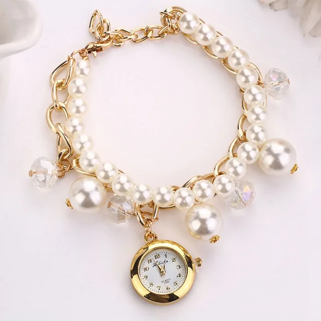 • 1 개 여성 인공 진주 라인 석 시계 석영 팔찌 손목 시계