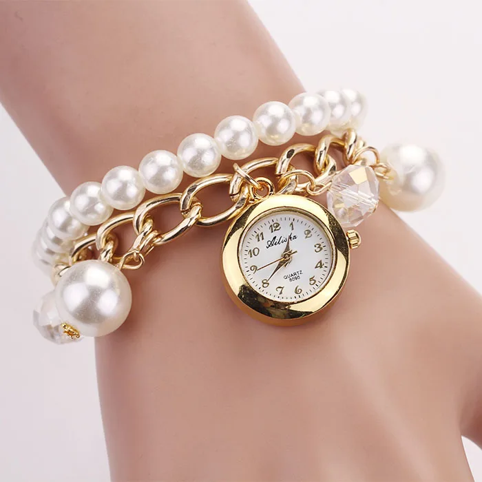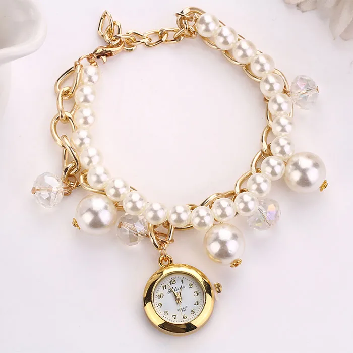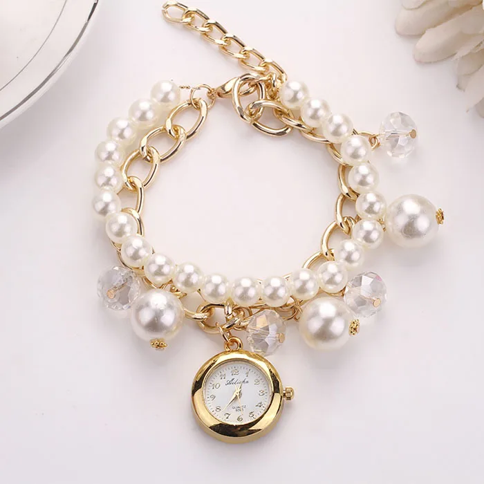 최고 핫! 여성의 팔찌 시계 인공 진주 라인 석 시계 석영 팔찌 시계 샤인 relogios feminino # A68