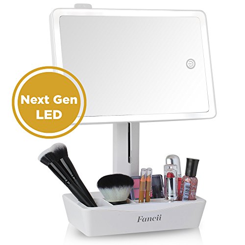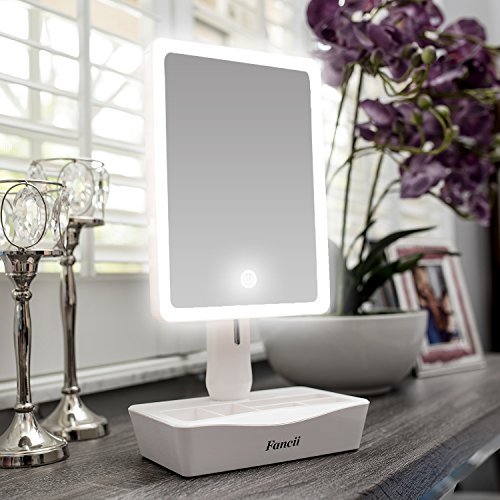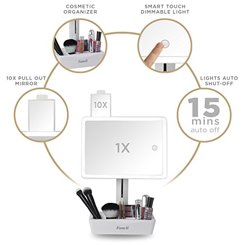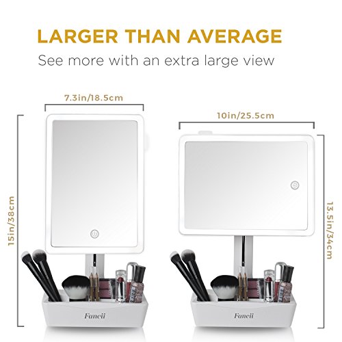 Fancii LED Lighted Large Vanity Makeup Mirror with 10X Magnifying Mirror - Dimmable Natural Light, Touch Screen, Dual Power, Adjustable Stand with Cosmetic Organizer