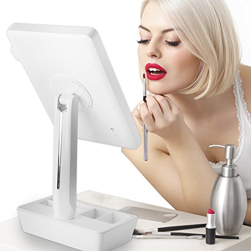 Extra large distortion-free glass with 1x and 10x dual magnification – Normal 1x view is ideal for applying makeup while the 10x pull out mirror is perfect for close up details